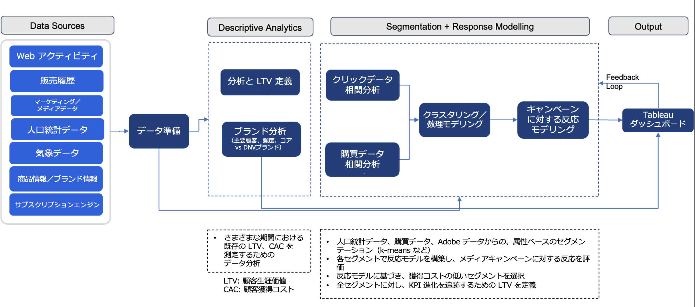 図 3: 消費者セグメンテーション: データソースとソリューションフロー