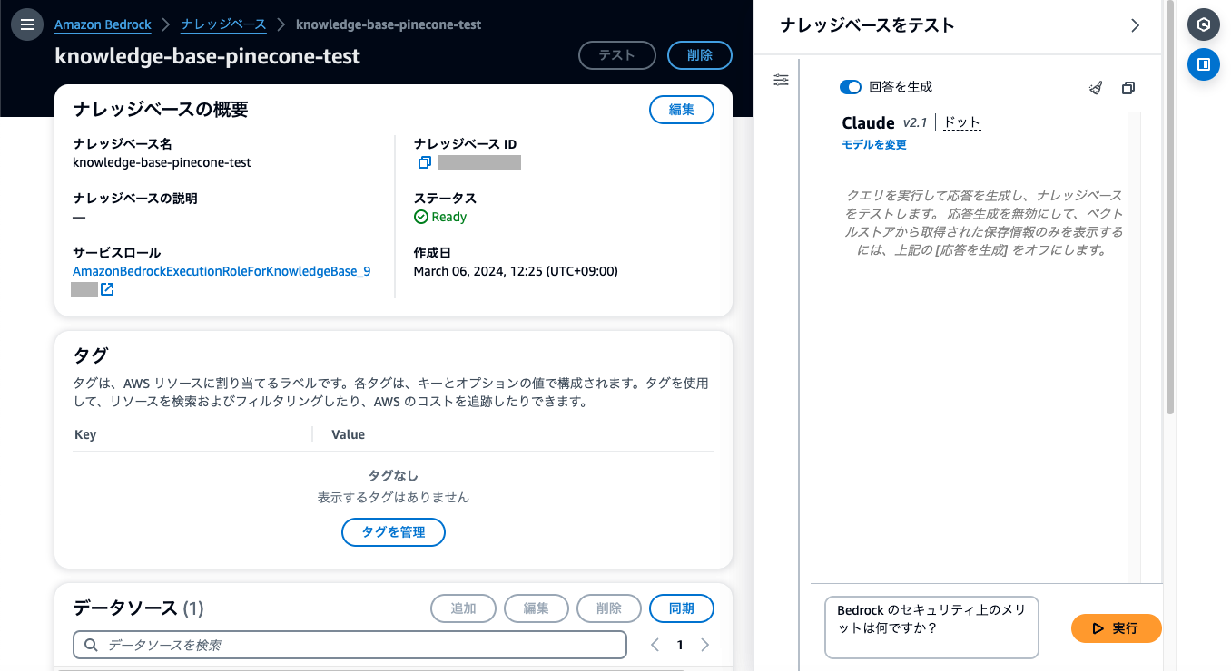 AWS Marketplace の Pinecone を Amazon Bedrock のナレッジベースとして利用する