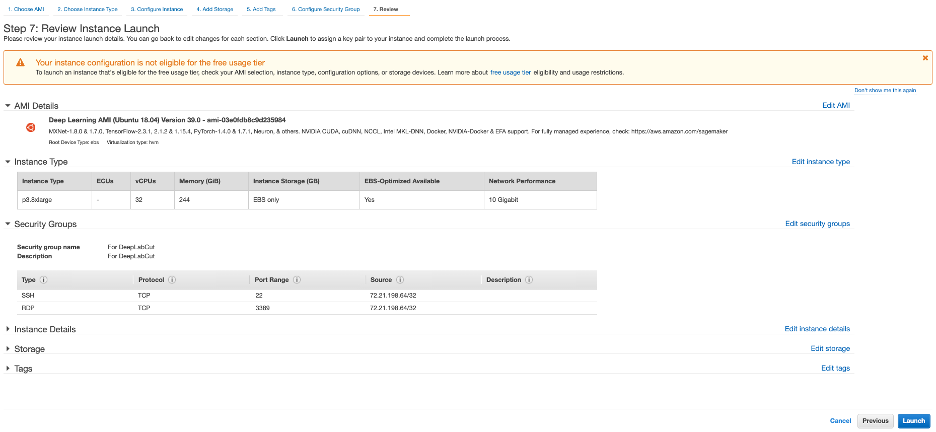 ここからは、DeepLabCutを動かすEC2インスタンスをDLAMIを利用して作成します。