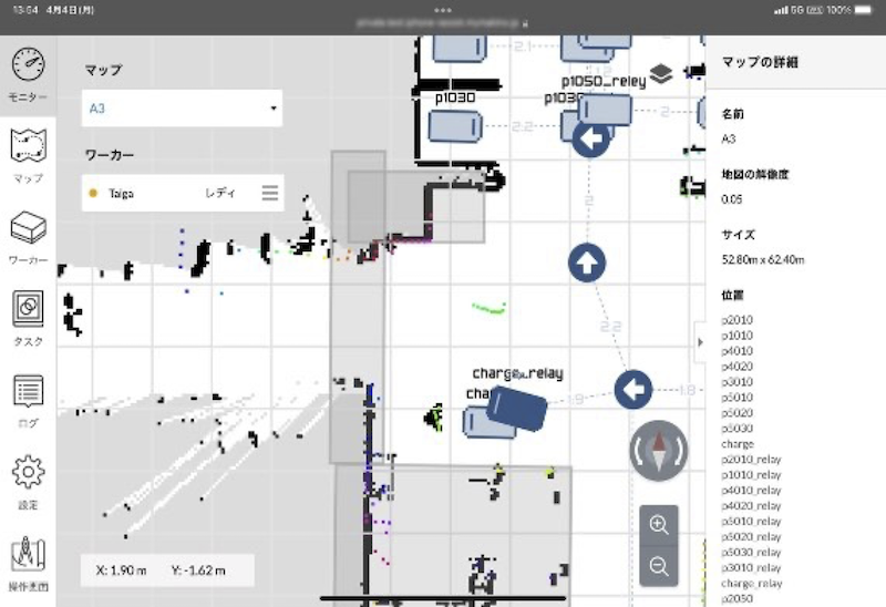 図 3: マキノの AMR ダッシュボードには LiDAR を使った自動マッピングが表示される