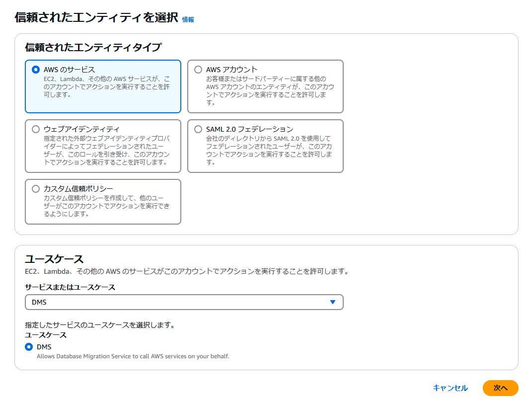 - サービスまたはユースケースで、DMS を選択します。