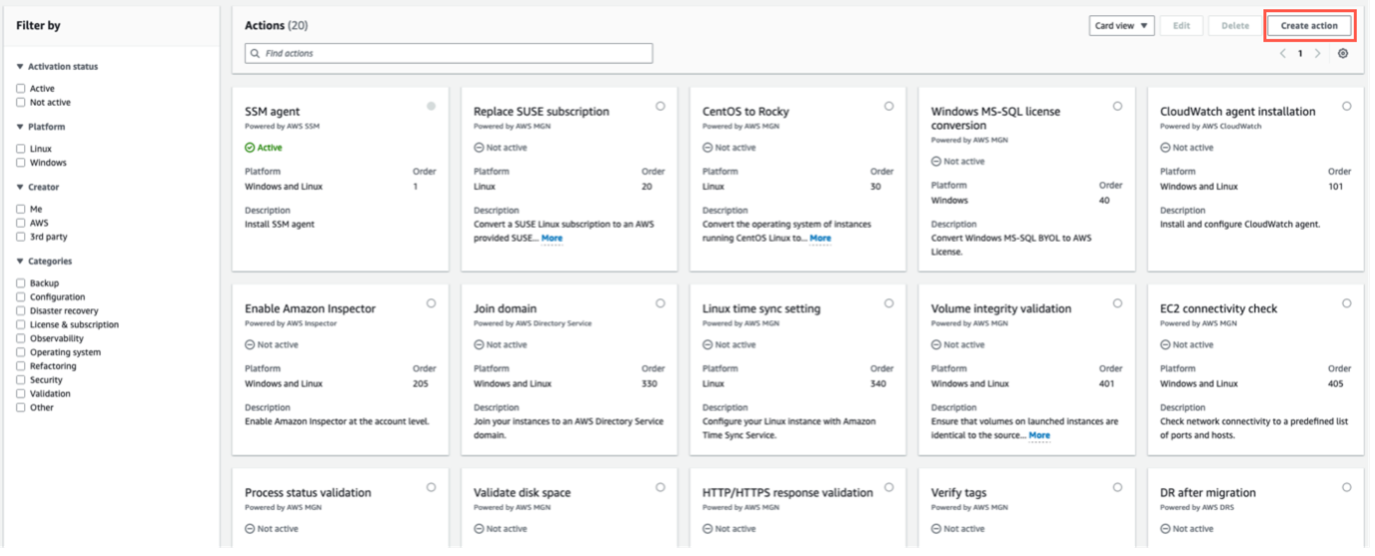 - VMware Tools から VMware 仮想マシンイメージを削除するために、まずカスタムアクションを作成する必要があります。「Create action」を選択してください (図 6)。