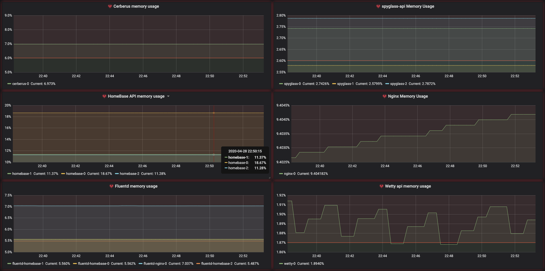 リクエストに対する CPU とメモリの使用状況を追跡するために、Grafana ダッシュボード 12421 を作成しました。