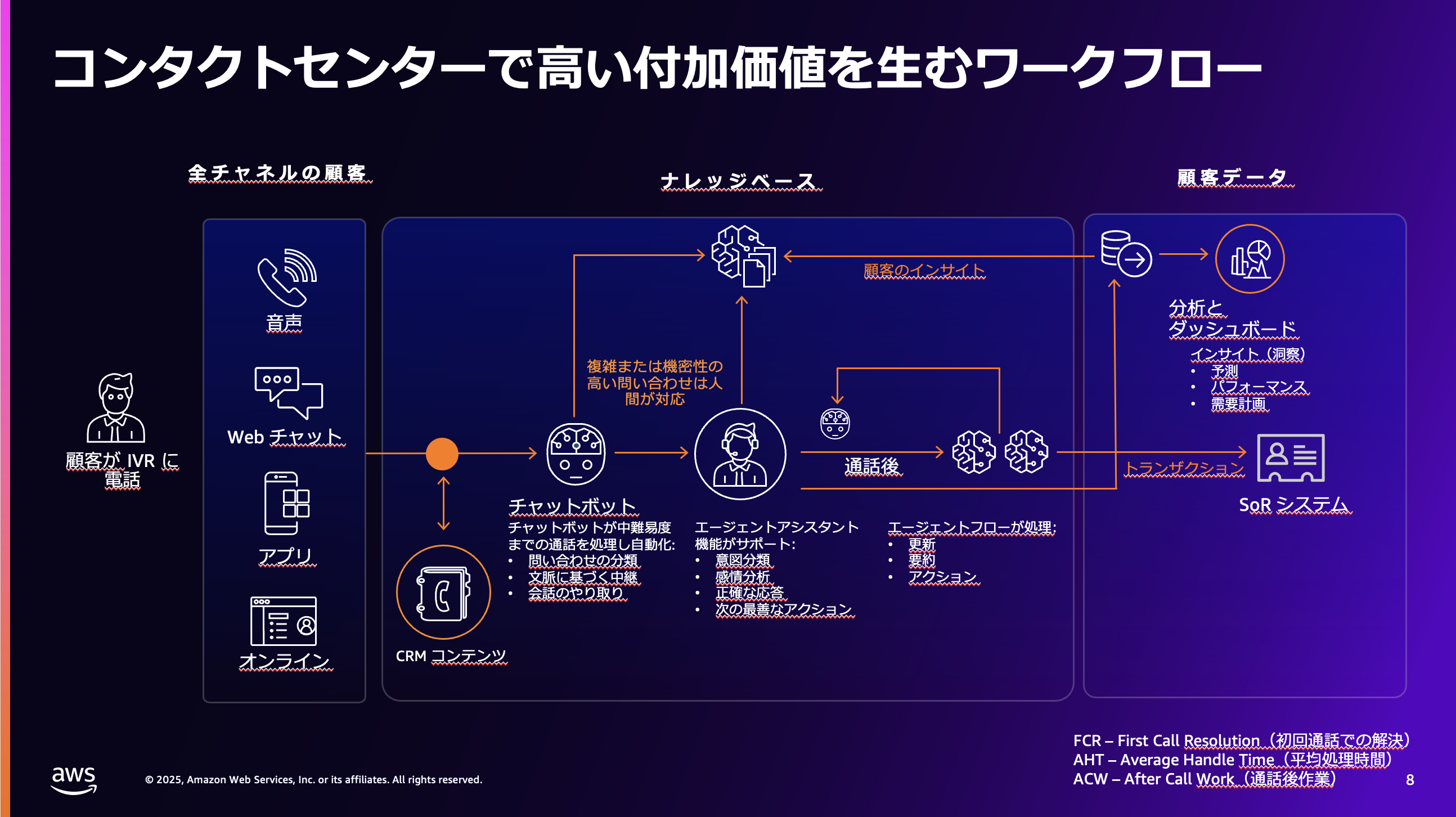 適切な応答の自動生成・関連文書の提示・感情分析による上級エージェントへの自動エスカレーション - 通話後作業の自動化