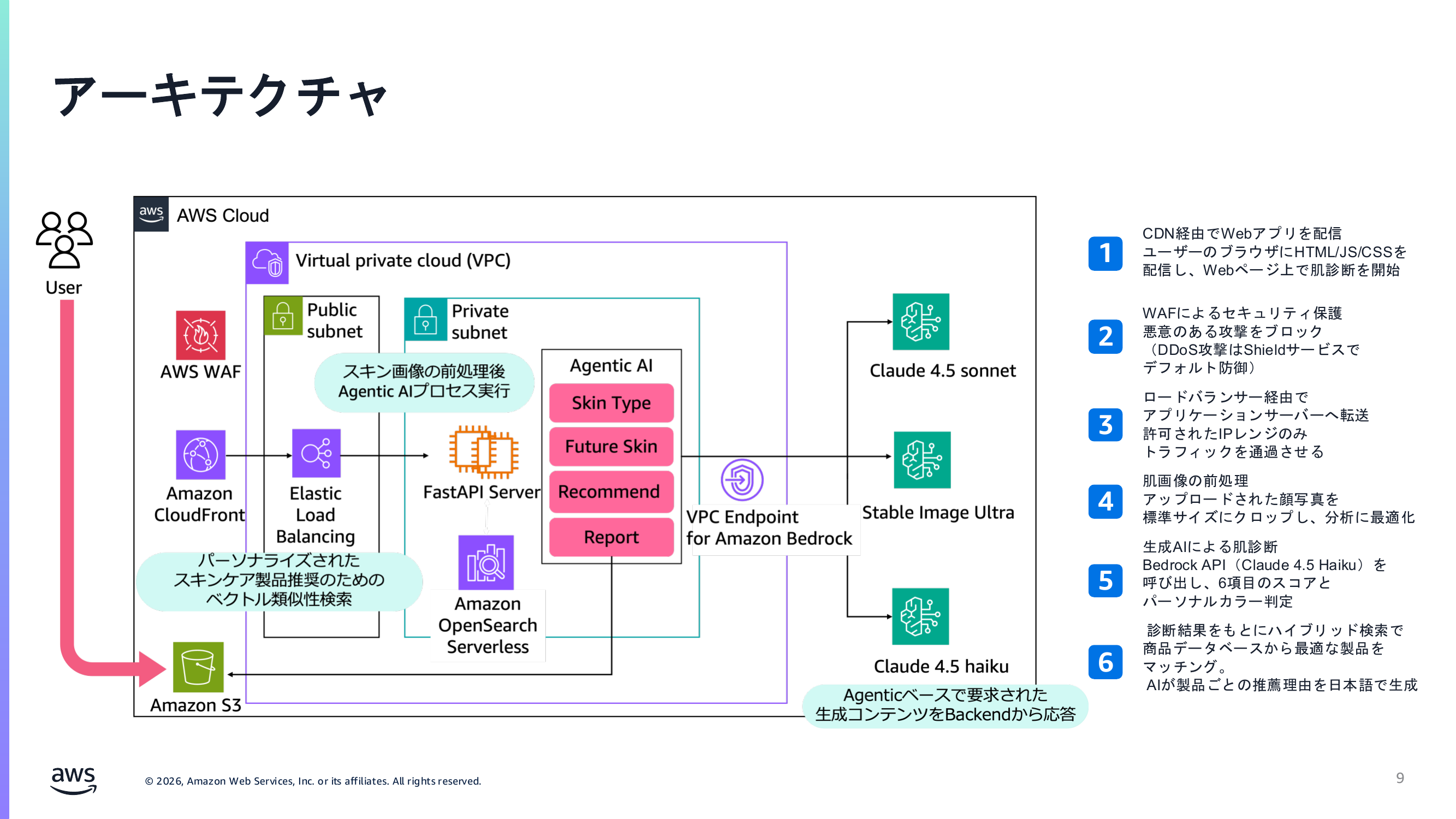 - Smart Beauty:画像解析により肌質を16タイプに詳細分類し、改善提案を自動化するデモです。美容部員の知見を AI が再現しています。(Smart Beauty 詳細資料)