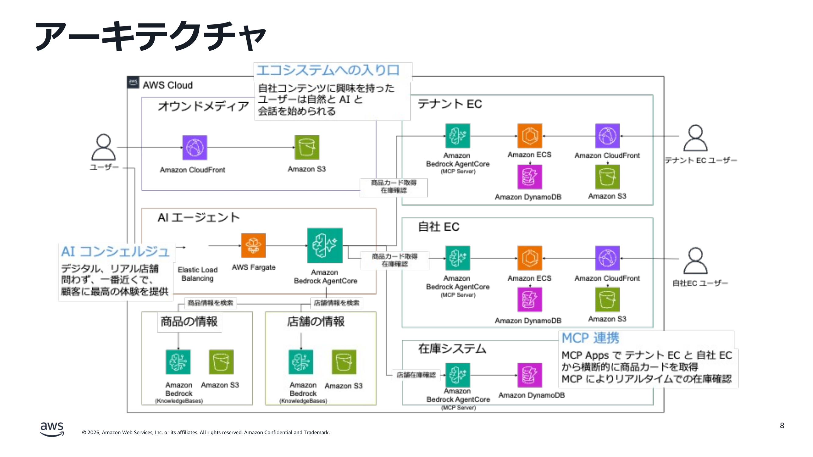 - リテール AI コンシェルジュ:商品提案から在庫確認、イベント案内、来店プランまで、EC から店舗へのシームレスな動線を実現するデモをご紹介しました。(リテール AI コンシェルジュ 詳細資料)