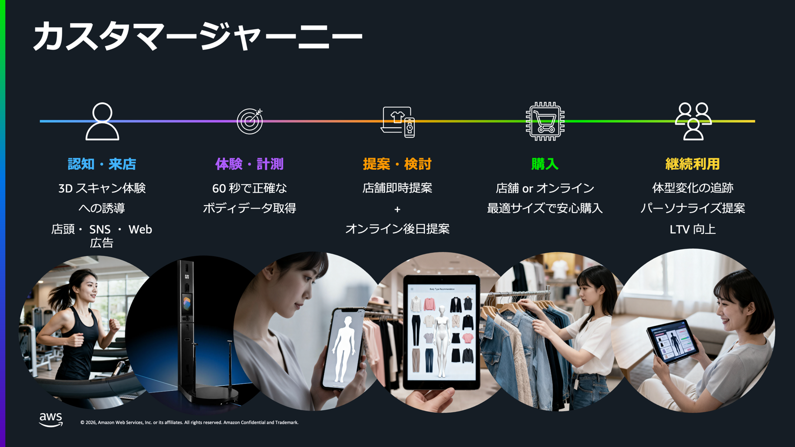 - Bodd:Bodd社の提供する 60秒の非接触ボディスキャンによる精密採寸テクノロジーで、ブランド横断のサイズ提案を実現するデモを展示しました。