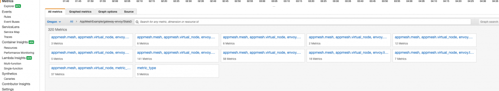 AppMeshExample/gateway-envoy/StatsDに表示されます。これは、上記の環境変数CW_CONFIG_CONTENTで変更できます。