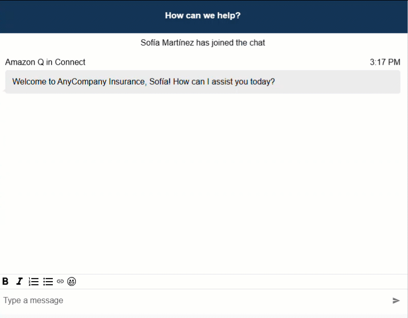 Amazon Q in Connect は、エージェント支援とセルフサービスを強化する強力な生成 AI 機能の両方を提供します。Amazon Q in Connect は、リアルタイムの補助や推奨アクションを通じてエージェントのサービス提供を支援するだけでなく、自動化されたセルフサービスを通じて顧客が直接問題を解決できるようサポートします。