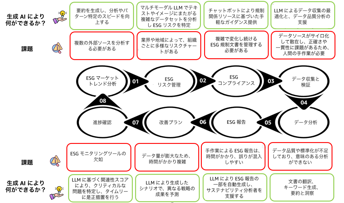 ESG ワークフローに対する生成 AI の利点のマッピング