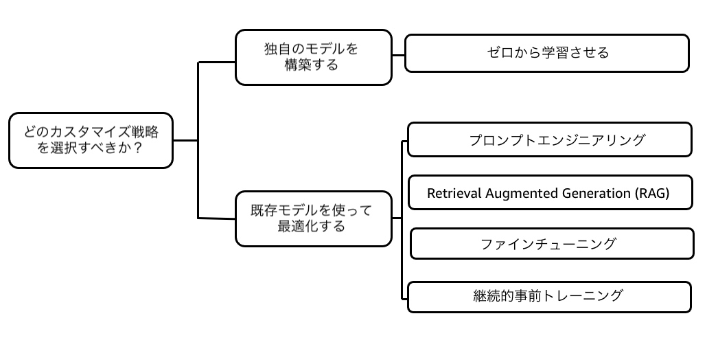 さらに、図 6 では、プロンプトエンジニアリングRetrieval Augmented Generation (RAG)ファインチューニングまたは継続的事前トレーニングなど、主な生成 AI 最適化戦略を示しています。