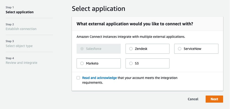 - Read and acknowledge を選択し、S3用アカウントが統合の要件を満たしていることを確認します
