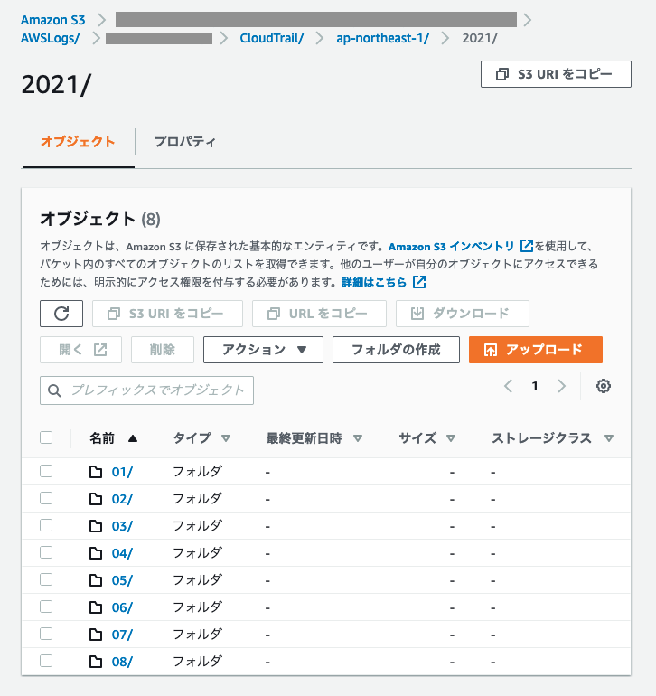 図 3: CloudTrail S3 バケットリージョンフォルダ