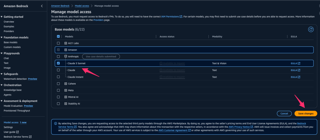 ステップ 4: Claude 3 Sonnet のオプションをチェックし、「変更を保存」ボタンをクリックしてください。