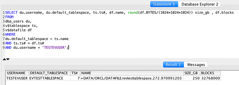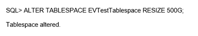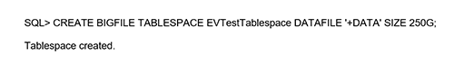 次のスクリーンショットが示すように、EVTestTablespace という、250 GB の大きなファイルテーブルスペースを作成しました。