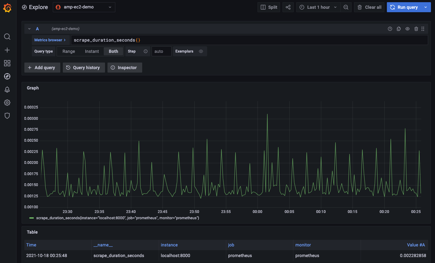 メトリクスが AMP に送られるようになりました! Prometheus サーバーのコンソールに出力が表示されるはずです。