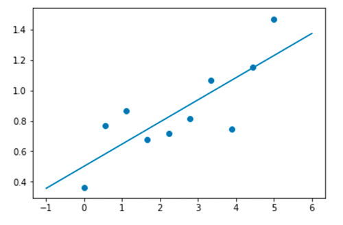 この 2 番目の例では、次のコードは 10 個のデータポイントのセットに対する最適な線形回帰を示しています。
