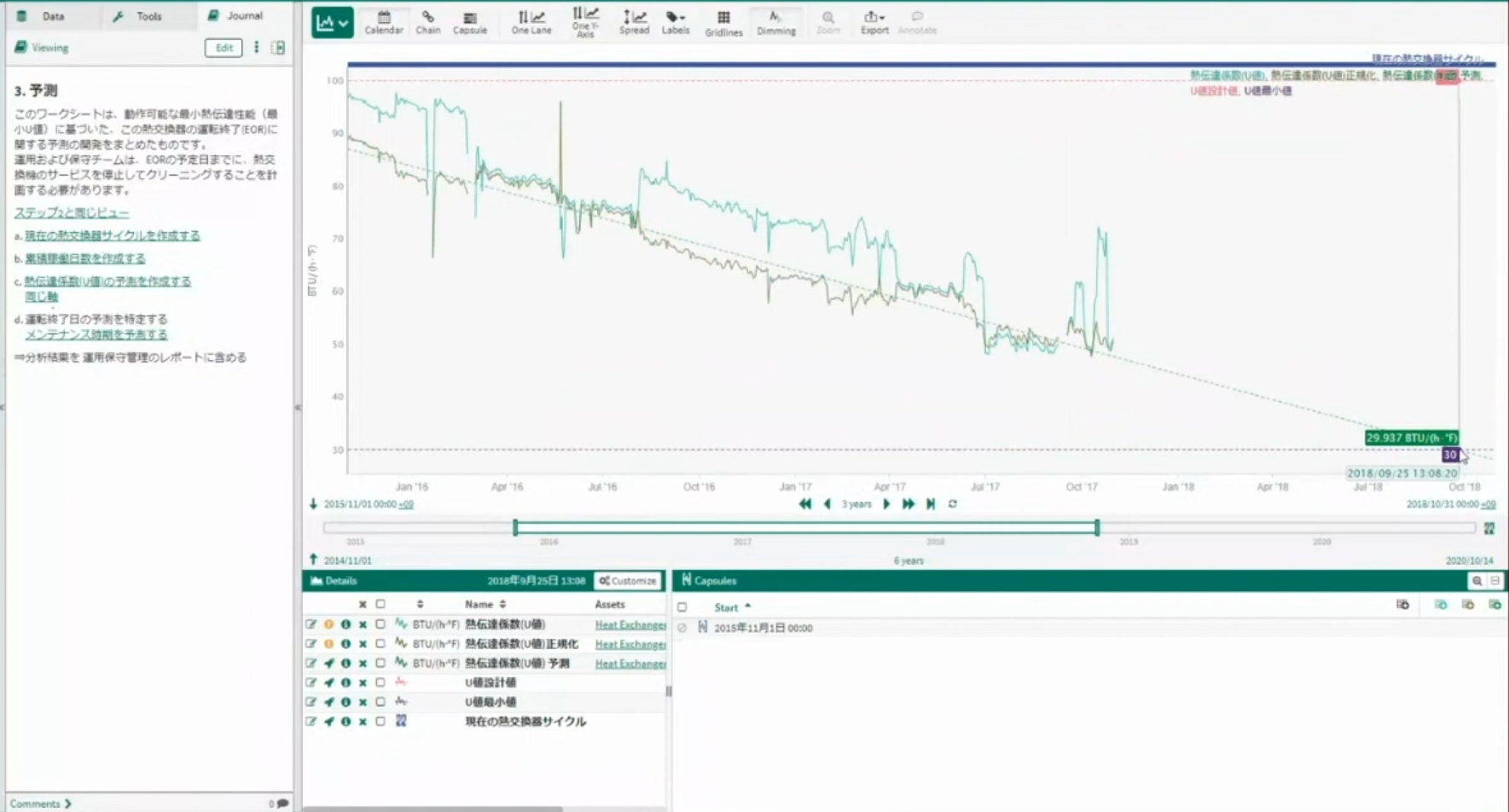 久利生様からは、まず他のデータに比べて「より丁寧な取り扱いが求められる」時系列データの分析について、留意すべき3つのポイントや、時系列データの取り扱いプロセスをご説明頂きました。次に「データ分析の高度化」を実現するために、時系列データ分析用ソフトウェアSEEQの活用方法をご紹介頂き、デモンストレーションでは、1.データの統合と前処理、2.メンテナンス時期の予測、3.バッチプロセスの可視化、を実演頂きました。最後に、DXを成功させる3つのポイントとして、組織横断的に構成されるデータ分析推進体制の構築、社内のDX人材育成、データ分析におけるペインポイントの解決(データ参照権限がないなど)、について具体例を踏まえて解説頂きました。