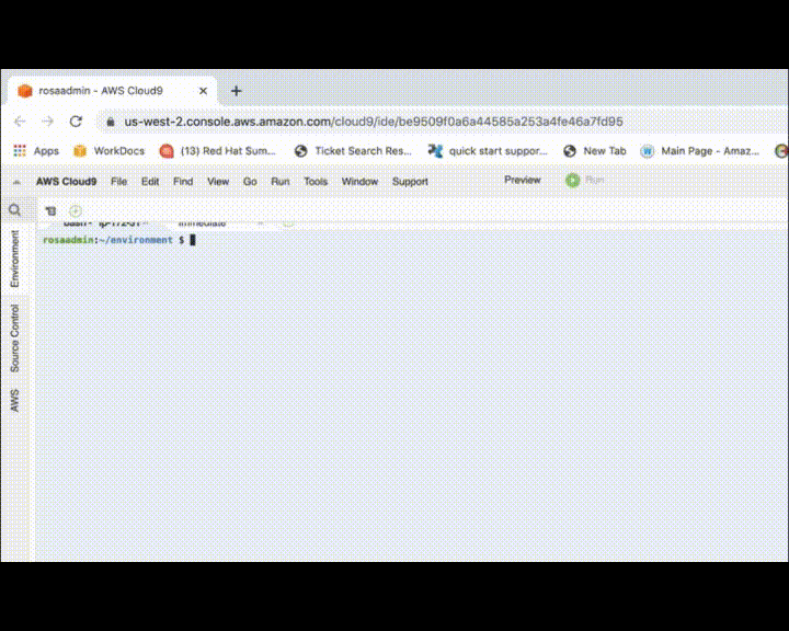 開発者用 IDE である AWS Cloud 9 を使用して、ROSA クラスターのデプロイを確認できます。Cloud 9 は AWS CLI があらかじめインストールおよび構成された、完全な環境を開発者に提供します。