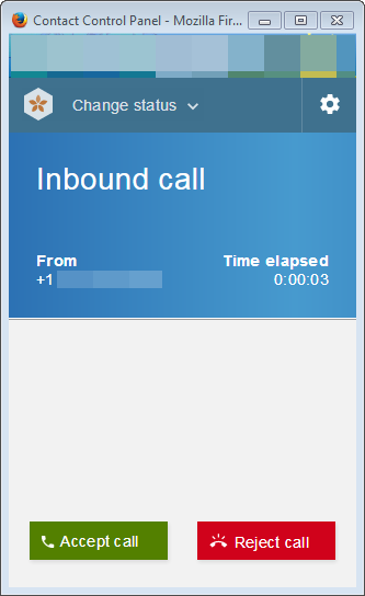 브라우저 기반 소프트 폰이 두 번째 창에서 팝업으로 뜨면서 전화를 받을 수 있습니다.
