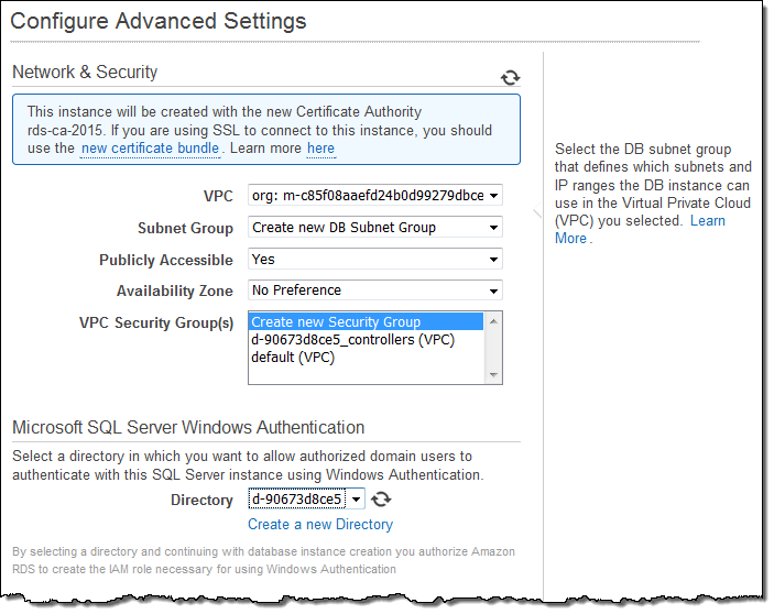 Microsoft Active Directory (Enterprise Edition)를 통해 AWS Directory Service에 저장된 자격 증명을 사용하여 SQL Server용 Amazon RDS에 대한 애플리케이션 인증을 허용 할 수 있습니다. 동일한 디렉토리에 모든 자격 증명을 유지함으로서 더 이상 각 복사본을 찾고 업데이트 할 필요가 없으므로 시간과 노력을 절약하면서 전체 보안 프로필이 향상 될 수도 있습니다.