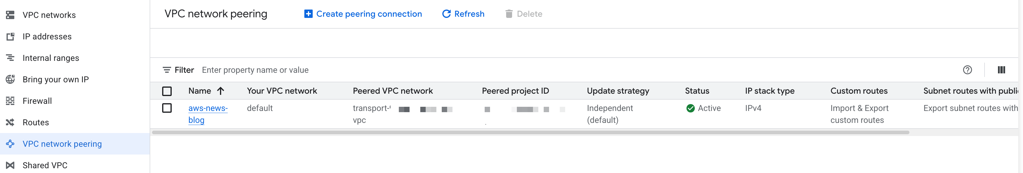 gcloud compute networks peerings create aws-news-blog \