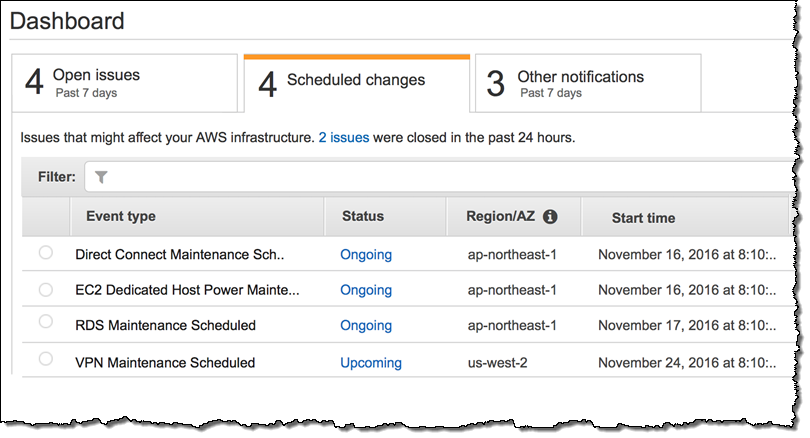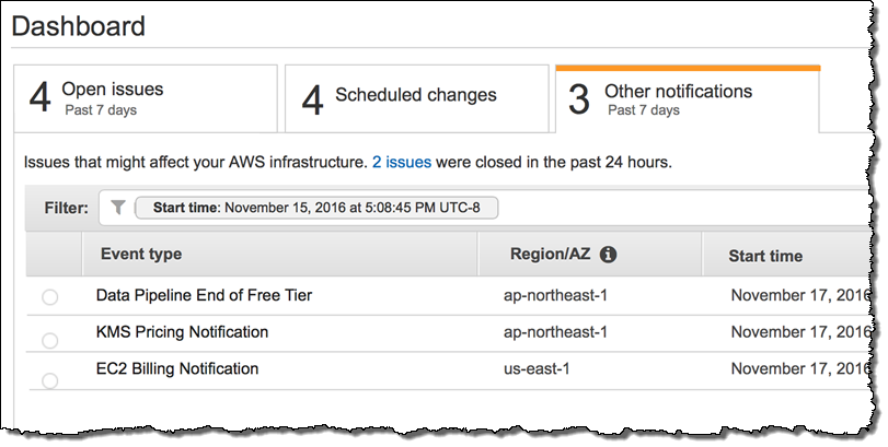 이 글은 AWS re:Invent 2016 신규 출시 소식으로 New – AWS Personal Health Dashboard – Status You Can Relate To의 한국어 번역입니다. re:Invent 출시 소식에 대한 자세한 정보는 12월 온라인 세미나를 참고하시기 바랍니다.