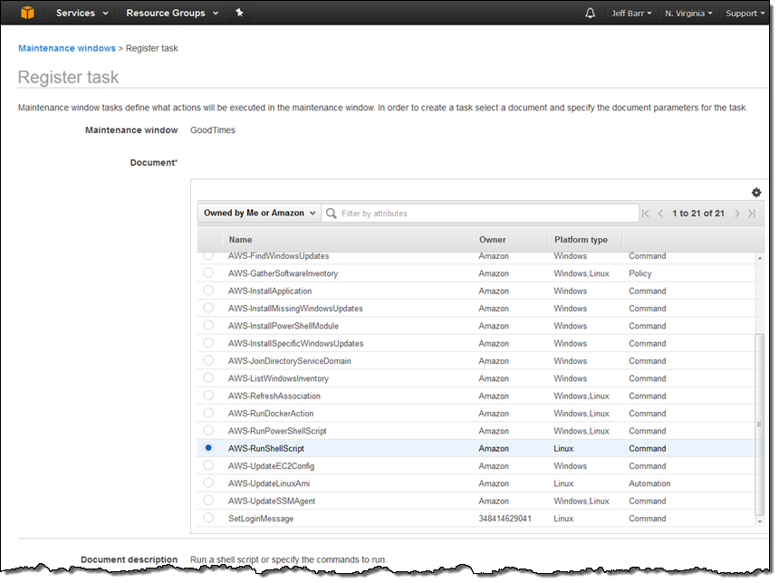 --document-name "AWS-RunShellScript" \