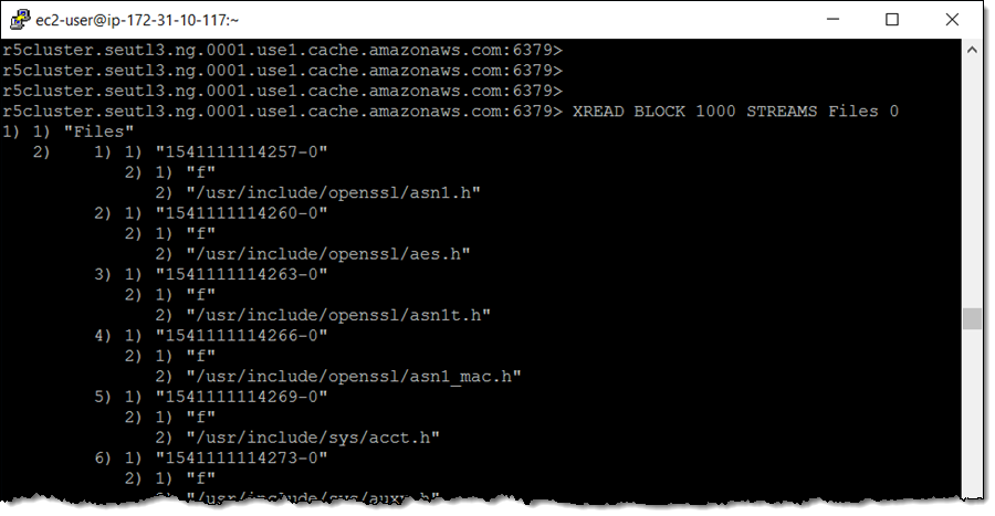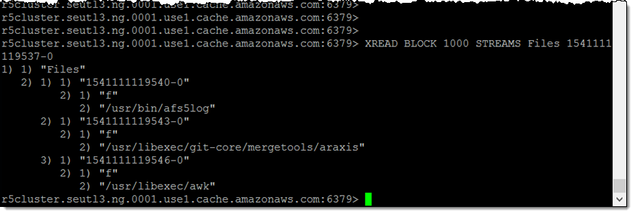XREAD BLOCK 1000 STREAMS Files 0 명령을 사용하여 스트림 앞부분에서부터 값을 검색할 수 있습니다.