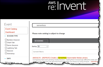 예정된 시작 시간에서 최소 10분 전에 도착하셔야 합니다. 전에 말씀드렸듯이 가장 인기가 많은 세션의 경우 반복적으로 열리도록 일정이 잡혀 있으며 세션 카탈로그에서 예약할 수 있습니다. 반복 세션은 모든 re:Invent 장소에서 일주일 내내 열리며 Content Hubs(모든 장소에 중앙 집중식으로 마련된 초과 인원 수용을 위한 룸)에서 초과 인원을 위한 세션이 제공됩니다. 또한 세션 참가 인원이 가득 차면 Content Hubs로 라이브 컨텐츠가 스트리밍될 것입니다.