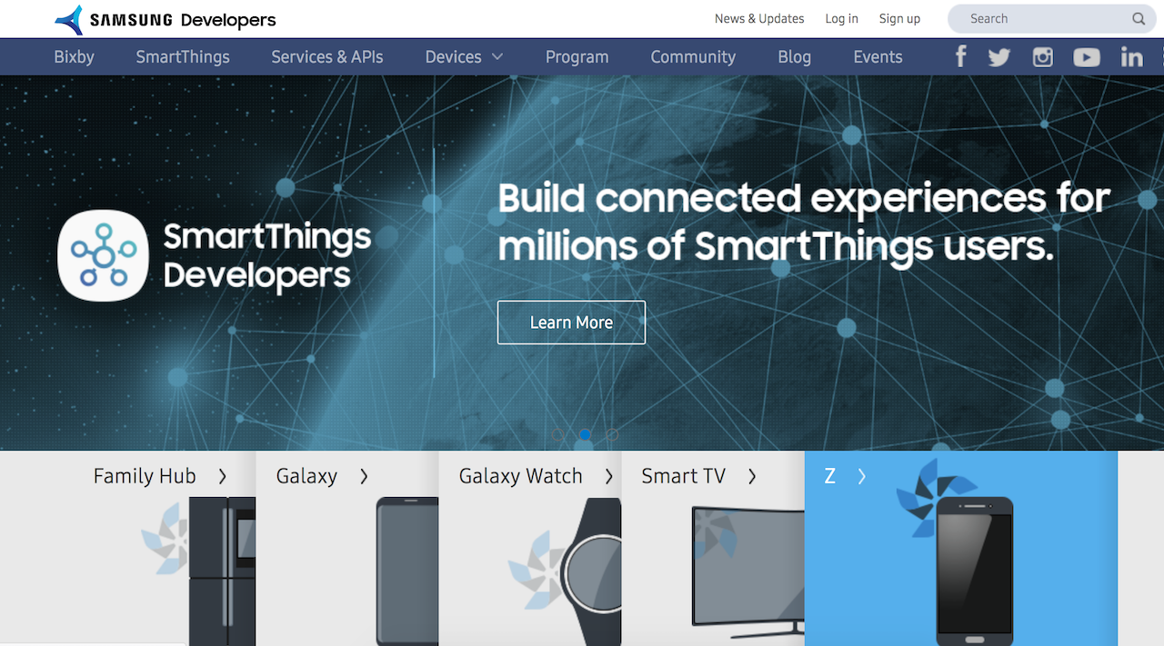 삼성 개발자 포털(Samsung Developers)은 삼성 제품들과 관련된 애플리케이션을 작성하려는 개발자, IT 관리자 및 학생을 대상으로 기술 문서, 개발자 블로그 및 API 가이드를 제공하기 위해 만들어진 삼성의 온라인 포털이며, Samsung Developers는 3개의 포털로 구성되어 있습니다.