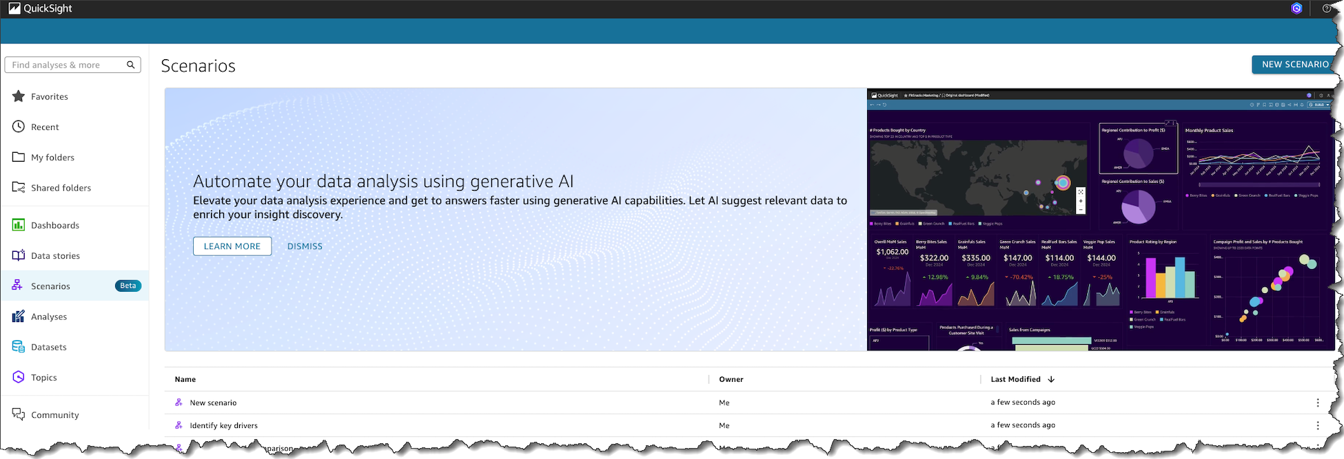 Amazon Q in QuickSight: 복잡한 문제 해결을 위한 시나리오 분석 기능 출시