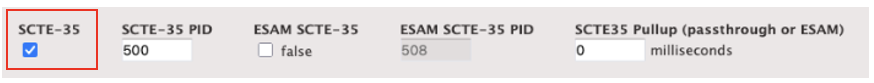 AWS Elemental Live는 방송 부조정실에서 송출되는 SDI 또는 IP 신호를 실시간으로 인코딩하며, 광고 마커 (Cue-point)를 삽입할 수 있습니다. 이러한 광고 마커는 향후 SSAI 삽입 시 광고 타이밍 기준으로 사용됩니다. Elemental Live 에서 광고 마커를 전달하기 위해서는 아래와 같이 광고 마커인 SCTE-35 부분에 체크를 해야 합니다.