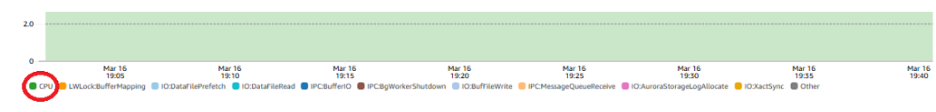 CPU와 IO:DataFilePreFetch와 같은 주요 대기 이벤트가 대부분의 부하를 유발하는 것을 확인할 수 있습니다. 이러한 대기 이벤트는 그래프 하단의 키에 포함되어 있습니다: