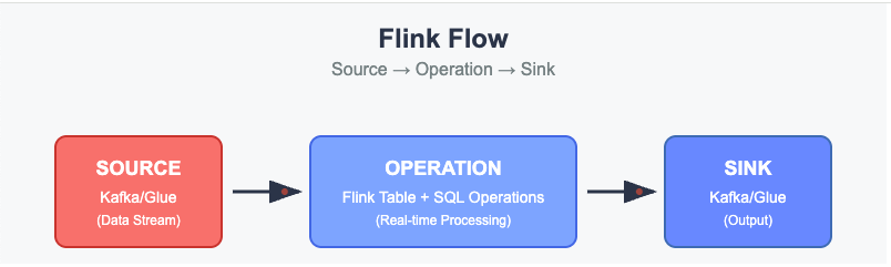 실제 구현에서 MSF는 MSK를 source와 sink로 활용하여 완전한 스트림 처리 파이프라인을 구성합니다. Kafka 토픽으로부터 데이터를 Flink로 읽어 오는 것을 Source라고 합니다. MSF는 이 데이터를 실시간으로 처리하여 뉴스 감정 분석, 주가 변동 계산 등의 복잡한 연산을 수행한 후, 처리된 결과를 다시 MSK의 다른 토픽으로 전송하는데 이를 Sink라고 합니다. 이러한 구조를 통해 데이터의 흐름이 끊어지지 않고 연속적으로 처리되며, 각 컴포넌트 간의 느슨한 결합을 통해 시스템의 유연성과 확장성을 극대화할 수 있습니다.
