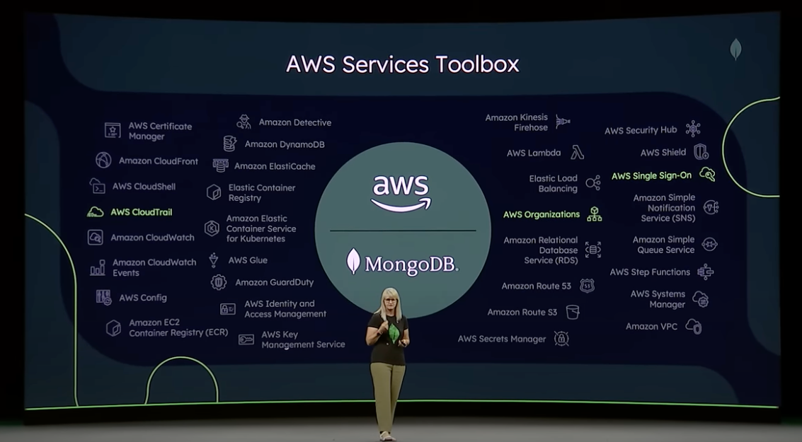 다음 연사로 나오신 Lena Smart (MongoDB CISO)님은 AWS 환경에서 MongoDB 가 강력한 보안 환경을 구성하기 위해 사용하였던 주요 AWS 보안 서비스에 대해 설명해주셨습니다. 여러 AWS 보안 서비스 중AWS CloudTrail, AWS Organizations, AWS Single Sign-On, Amazon GuardDuty, AWS Config, AWS Security Hub 등을 특히 강조하셨는데요. 아마도 멀티 계정 환경에서 가장 기본이 되는 보안 서비스로서 계정 환경의 보안 경계를 수립할 수 있는 AWS Organizations 와 더불어 위협탐지 및 규정 준수에 활용될 수 있는 서비스들을 우선 순위로 꼽으신 것 같았습니다.