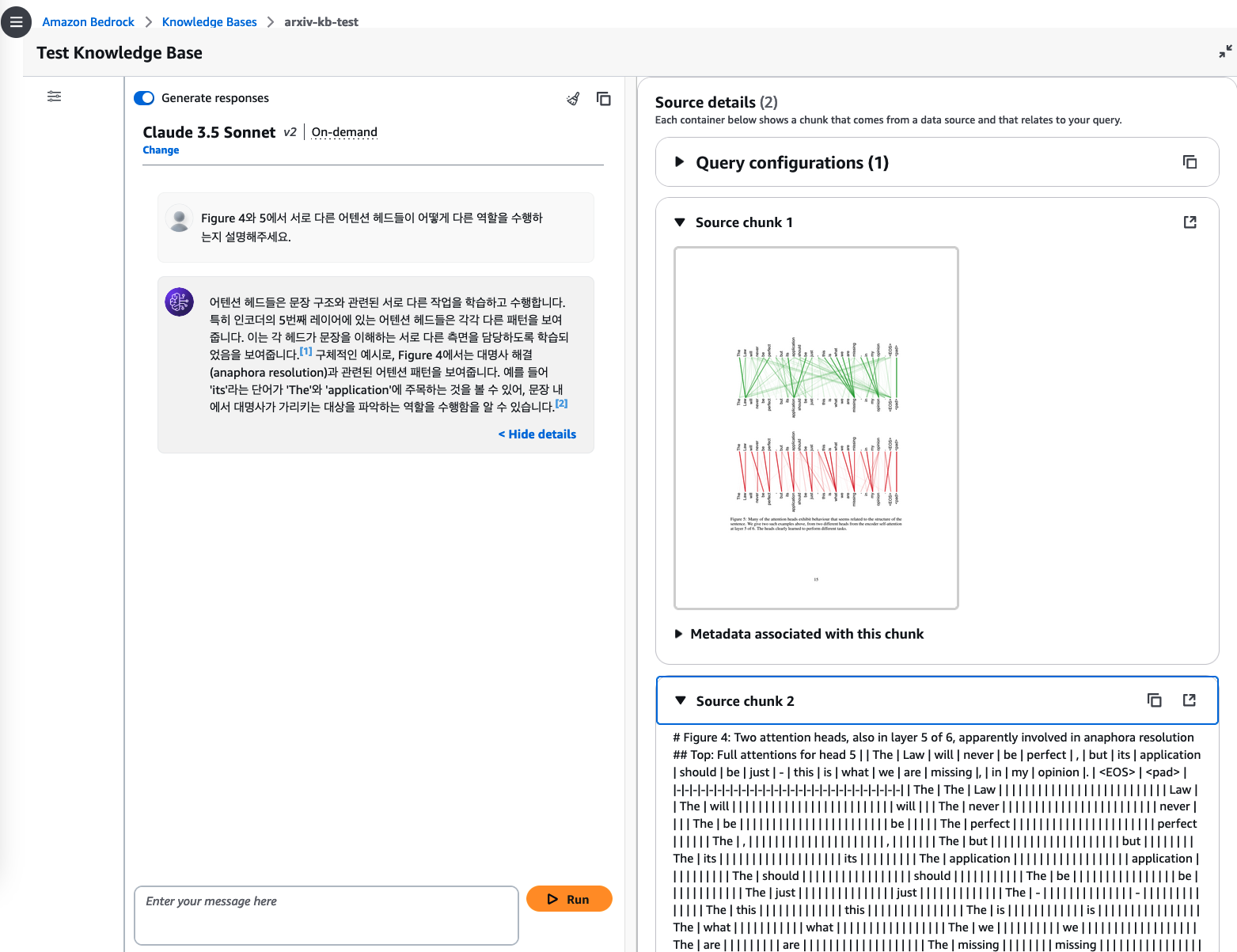 다음 3개의 사용자 쿼리에 대한 답변 생성 시 참조하는 Source chunk를 확인해보면 테이블 또는 이미지의 정보를 참조함을 확인할 수 있습니다.- 테이블 정보 기반 쿼리 : “Table 3에서 dropout 값 변화에 따른 BLEU 점수 변화를 설명해주세요.”