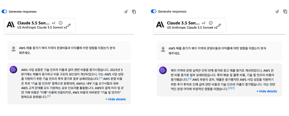 - 질문: “AWS 매출 증가가 북미 지역의 운영비용과 이익률에 어떤 영향을 미쳤는지 분석해주세요.”