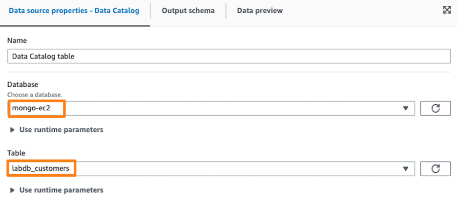 단계 3에서 생성된 Data Catalog를 기반으로 ETL job을 수행하여 MongoDB 데이터를 S3에 저장합니다.