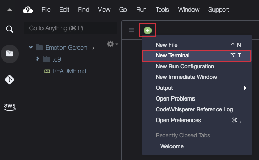 [Environment]에서 “Image Recommender”를 [Open]한 후에 아래와 같이 터미널을 실행합니다.
