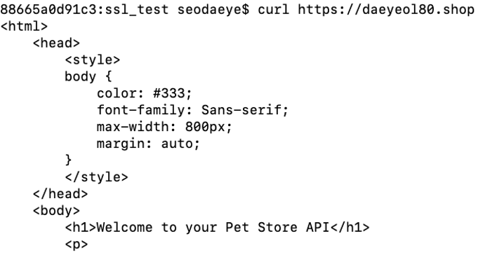 - 생성 후 동작 테스트는 다음과 같이 ‘curl’ 명령어를 이용합니다.