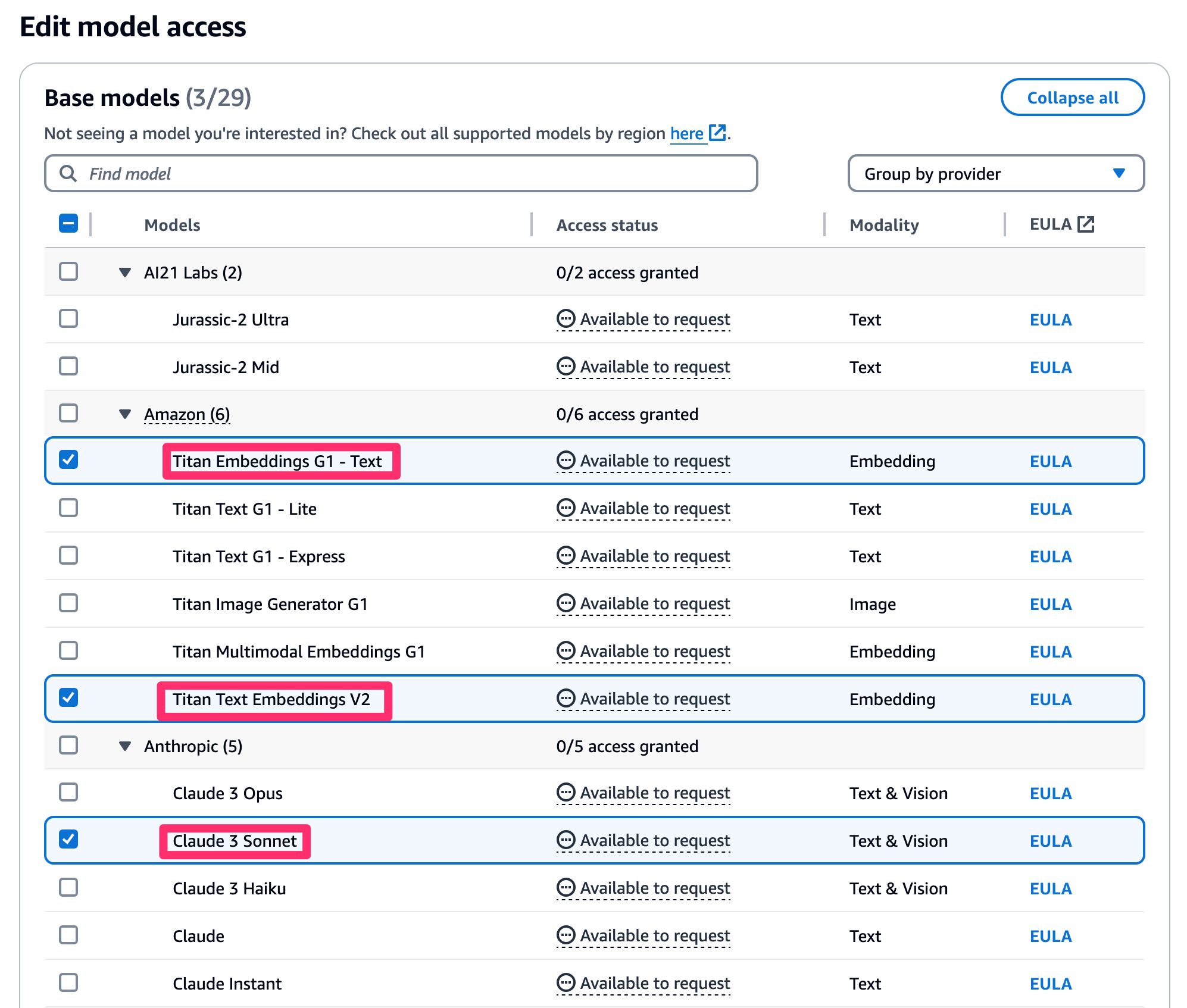 Bedrock model access 요청하기