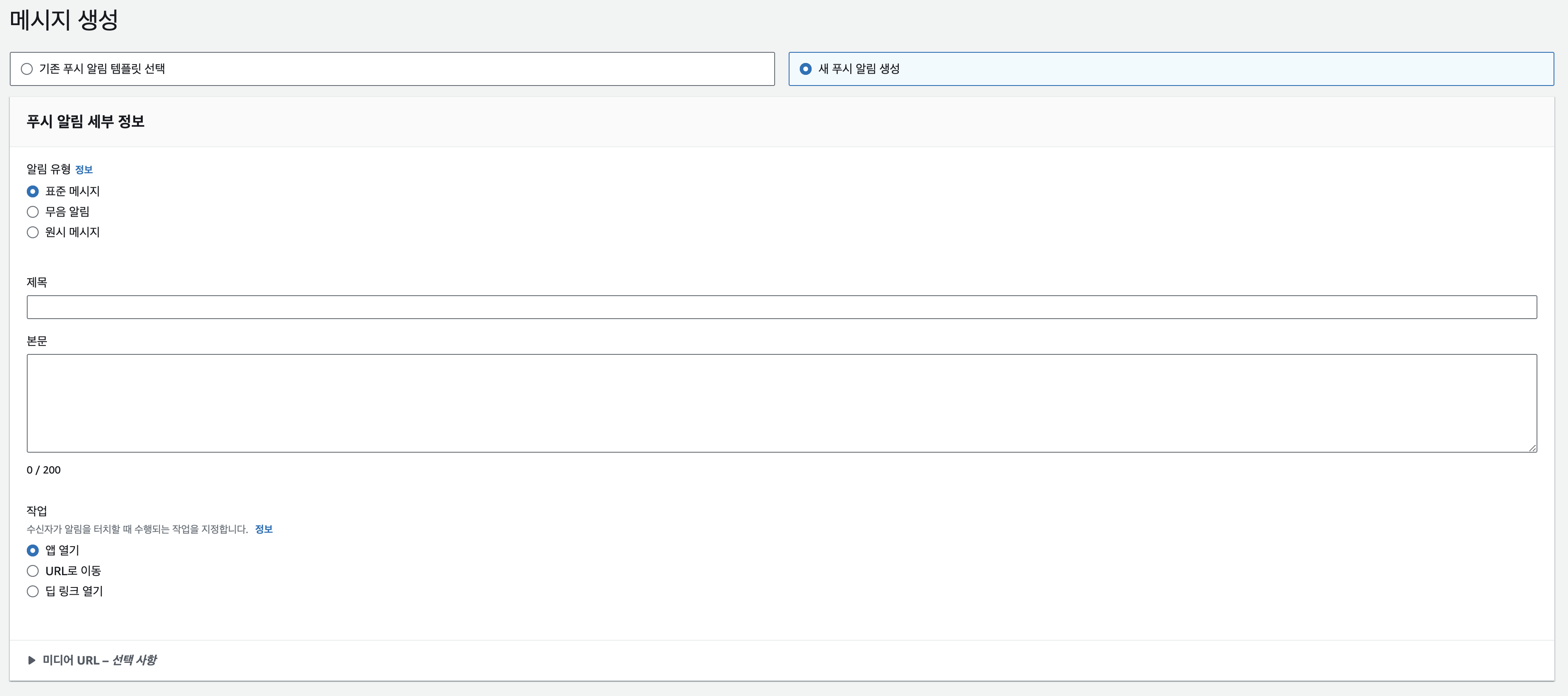 - 푸시 알림 템플릿 선택 / 새 푸시 알림 생성