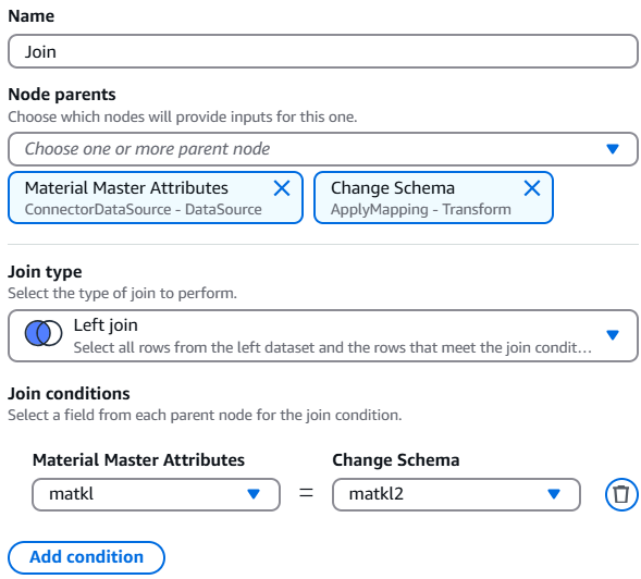 Join_node1730874996674 = DynamicFrame.fromDF(MaterialMasterAttributes_node1730873953236DF.join(ChangeSchema_node1730875214894DF, (MaterialMasterAttributes_node1730873953236DF['matkl'] == ChangeSchema_node1730875214894DF['matkl2']), "left"), glueContext, "Join_node1730874996674")