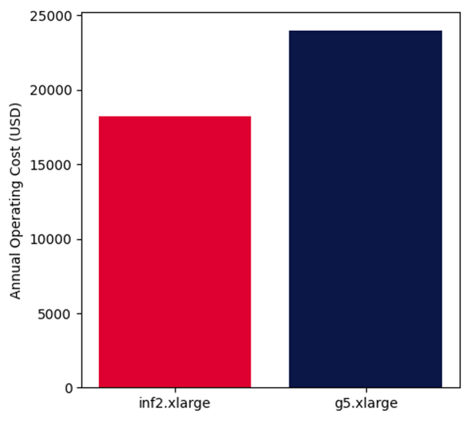 그림 8. Annual Operation Cost Comparison inf2.xlarge vs. g5.xlarge