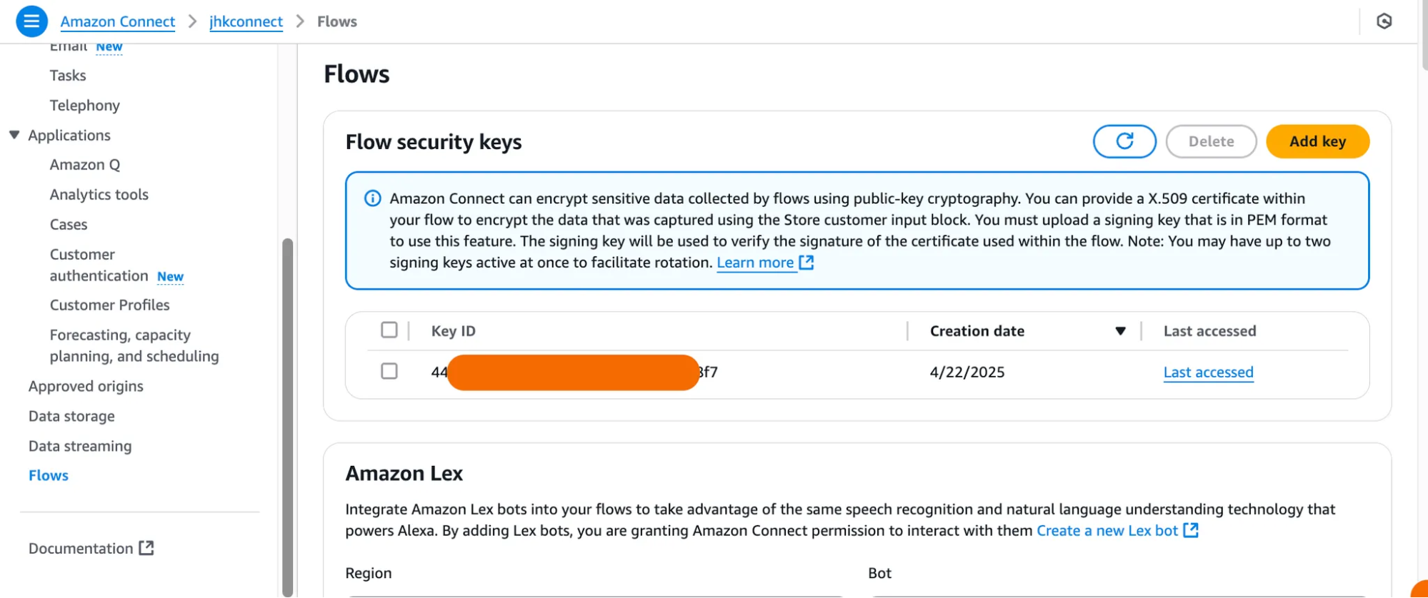 이를 활용하면 보유하거나 생성한 X.509 인증서를 콘솔을 통해 등록하고, Connect Flow를 통해 특정 Attribute를 암호화 할 수 있습니다. 적용 과정은 다음과 같이 진행됩니다.