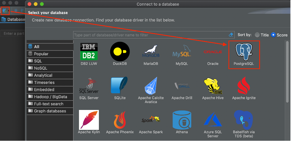 - DB Connection을 만들기 위해 DBeaver Tool에서PostgreSQL을 선택합니다.