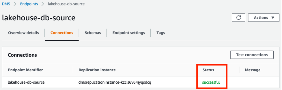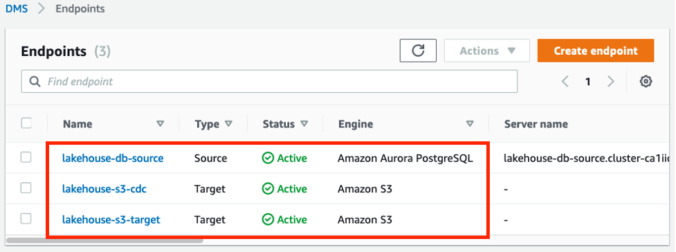 - AWS DMS Endpoints의 상태를 확인합니다.
