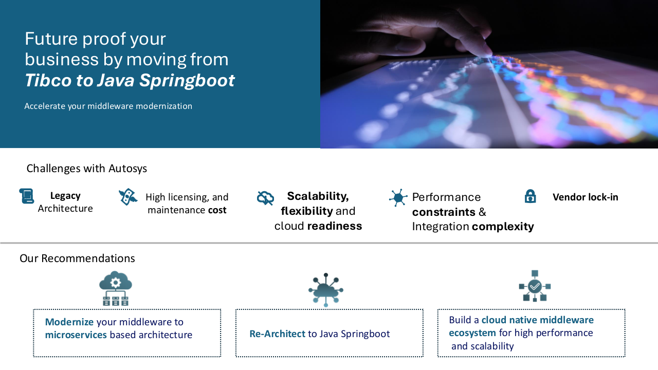 - Pilot migration of 10 critical TIBCO processes into reusable Java Spring Boot microservices