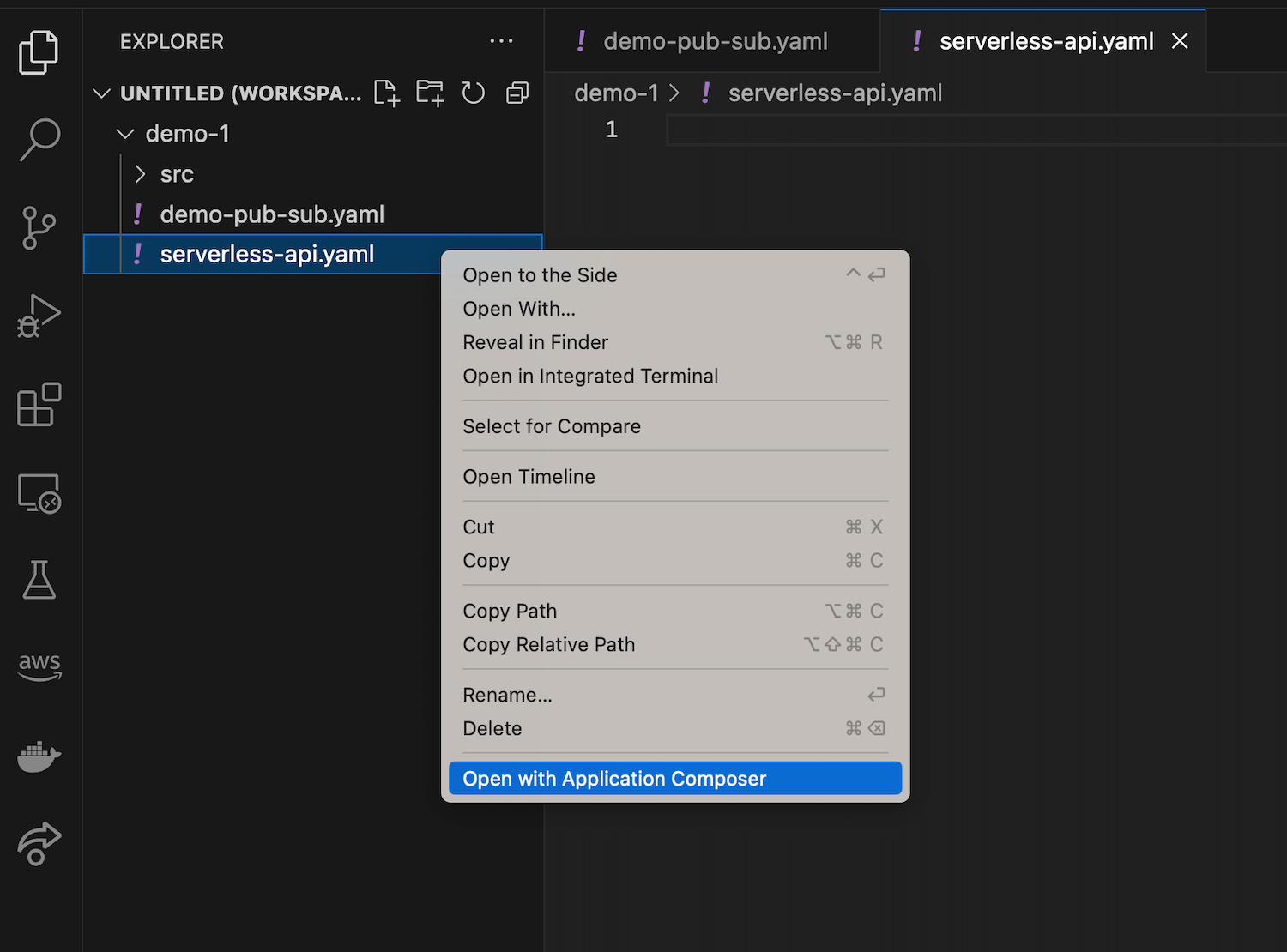 Usando o AWS Application Composer no Visual Studio Code